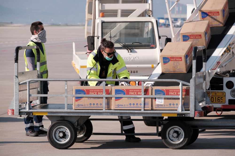 Η αποστολή με ιατρικές προμήθειες που παρείχε η κινεζική κυβέρνηση προς την Ελλάδα, κατόπιν επείγοντος αιτήματος της ελληνικής κυβέρνησης, έφτασε στην Αθήνα το Σάββατο το πρωί, με πτήση της Air China CA 863. Η βοήθεια, βάρους περίπου 8 τόνων, περιλαμβάνει 550.000 προστατευτικές και χειρουργικές μάσκες, προστατευτικό εξοπλισμό, γυαλιά, γάντια και καλύμματα παπουτσιών.