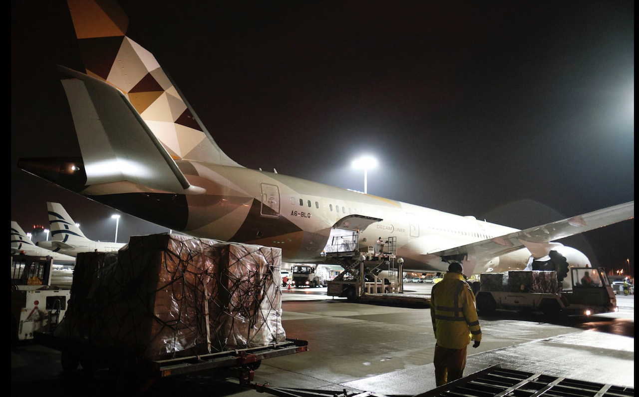 Πρόκειται για ιατρικό υλικό περίπου έντεκα τόνων που έφθασε στη χώρα μας με ειδική πτήση της Etihad Airways.