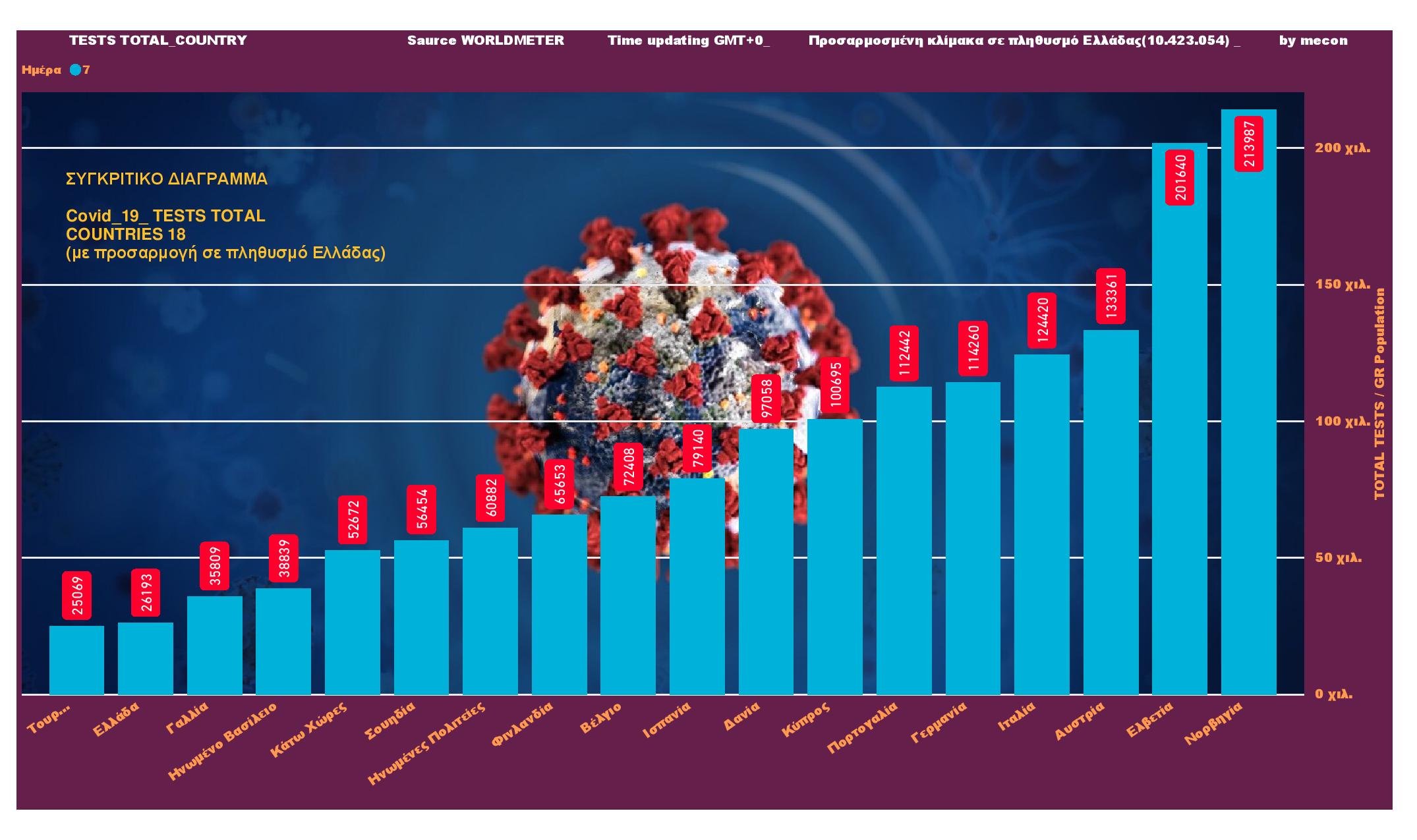 Ακρως απογοητευτικά είναι τα στοιχεία για τα τεστ που γίνονται στην Ελλάδα: Είναι προτελευταία σε 18 χώρες στον αριθμό των τεστ εντοπισμού του κορωνοϊού. Μία κρίσιμη διαδικασία για την απομόνωση των νοσούντων και την έγκαιρη παροχή θεραπευτικής αγωγής σε αυτούς, κάτι που συμβάλει αποφασιστικά στον περιορισμό της επιδημίας.