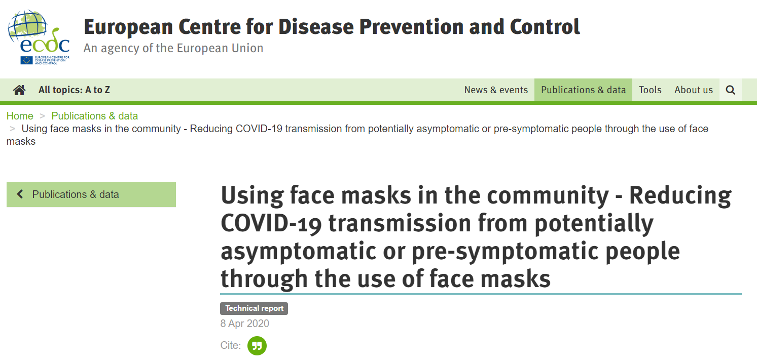 Έτσι λοιπόν, σύμφωνα με το Ευρωπαϊκό Κέντρο Πρόληψης και Ελέγχου Νοσημάτων η χρήση μάσκας συστήνεται: