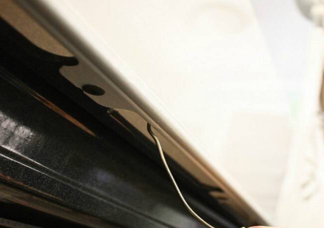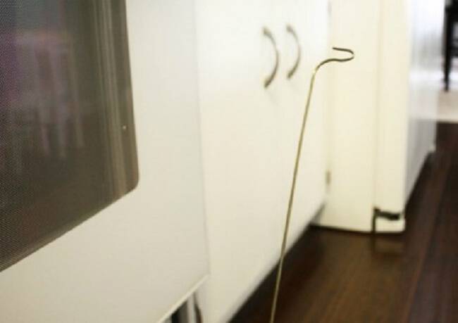 Αν έχετε κάποια παλιά σιδερένια κρεμάστρα τότε μπορείτε να τη χαραμίσετε για το καλό του φούρνου σας. Βγάλτε το σύρμα και μην το ισιώσετε τελείως γιατί θα σας χρειαστεί ο γάντζος που έχει η κρεμάστρα από φυσικού της για να εισχωρήσετε στο εσωτερικό του διπλού τζαμιού.