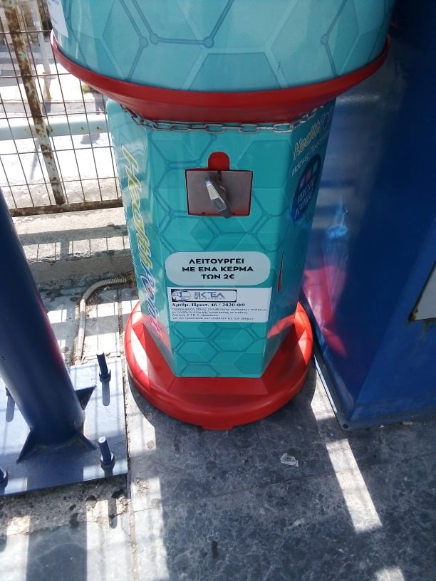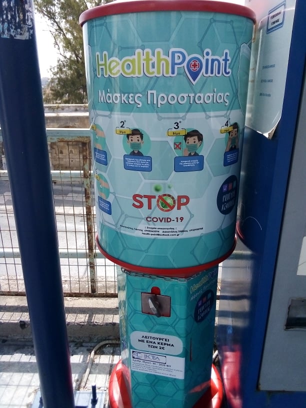 Με τιμή 2 ευρώ η μία, αυτόματα μηχανήματα που έχουν τοποθετηθεί σε στάσεις λεωφορείων στην Κρήτη, πουλάνε μάσκες προστασίας.