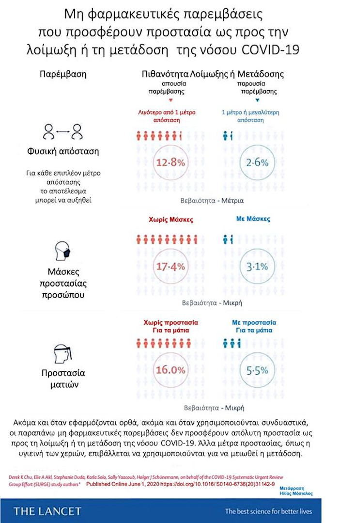 Ο εκπρόσωπος της Ελλάδας στους διεθνείς οργανισμούς για τον κορωνοϊό στην ανάρτησή του στο Facebook παραθέτει μη φαρμακευτικές παρεμβάσεις που προσφέρουν προστασία ως προς την λοίμωξη ή τη μετάδοση της νόσου Covid -19.