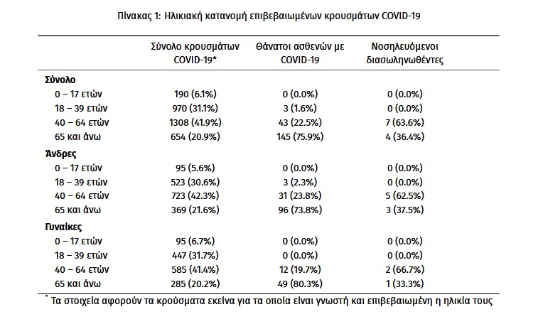 Τέλος, δεν έχει καταγραφεί κανένας νέος θάνατος ενώ έχουμε 191 θανάτους συνολικά στη χώρα. 61 (31.9%) γυναίκες και οι υπόλοιποι άνδρες. Η διάμεση ηλικία των θανόντων συμπολιτών μας ήταν τα 76 έτη και το 95.8% είχε κάποιο υποκείμενο νόσημα ή/και ηλικία 70 ετών και άνω.