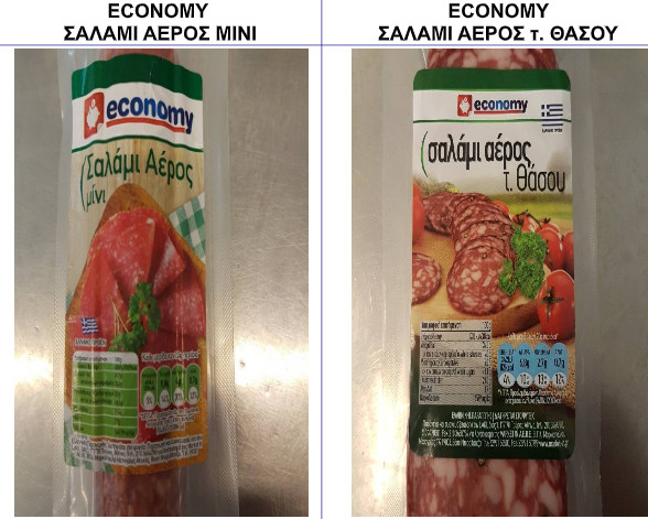α) «Economy – Σαλάμι αέρος, τ. Θάσου», βάρος: 120 g σε φέτες, αριθ. Παρτίδας: L 02196, ημ. ανάλωσης έως: 10.01.2021.