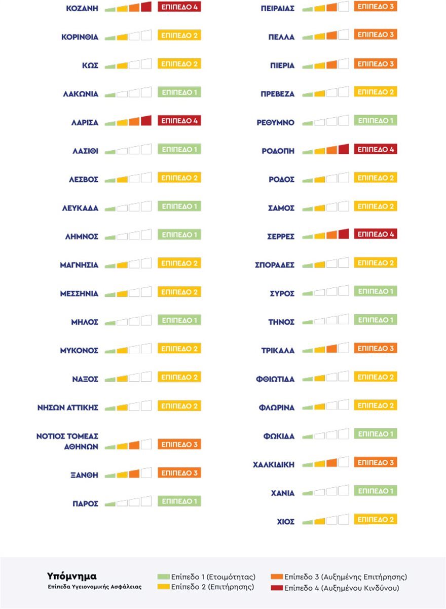 Υπενθυμίζεται ότι στο επίπεδο 4 βρίσκονται αυτή την στιγμή οι εξής περιφερειακές ενότητες: Θεσσαλονίκη, Ιωάννινα, Καστοριά, Κοζάνη, Λάρισα, Ροδόπη και Σέρρες.