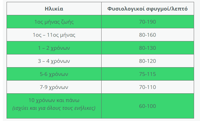 Καρδιά: Φυσιολογικοί παλμοί ανά ηλικία