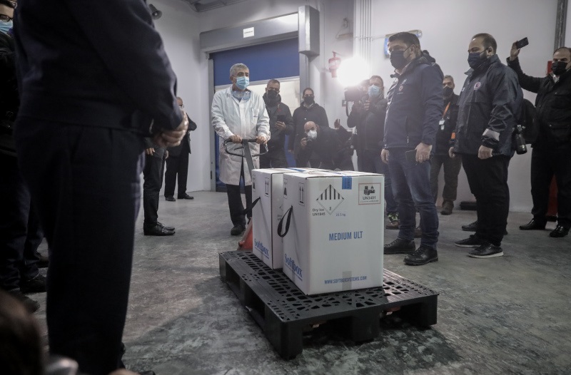 Στην Ελλάδα βρίσκονται από χθες το βράδυ οι πρώτες δόσεις του εμβολίου κατά του κορωνοϊού, τα οποία αποθηκεύτηκαν σε ειδικά ψυγεία στο Κρυονέρι.
