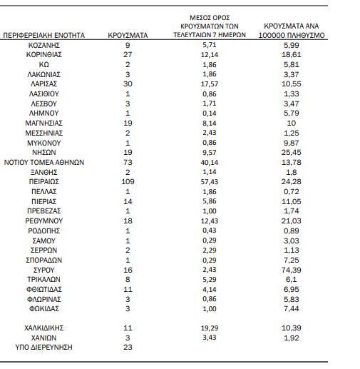 • Κεντρικός Τομέα Αθηνών: 230 κρούσματα