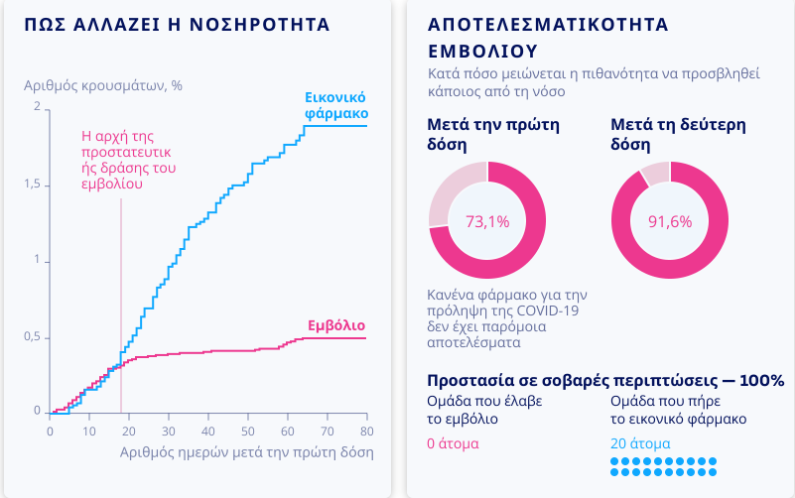 Χρειάστηκαν μήνες έρευνας για τους Ρώσους ανοσολόγους αλλά και τους χιλιάδες εθελοντές προκειμένου να ολοκληρώσουν την τρίτη φάση των κλινικών δοκιμών, η οποία επιβεβαιώνει την αποτελεσματικότητα σε ποσοστό 91,6%.