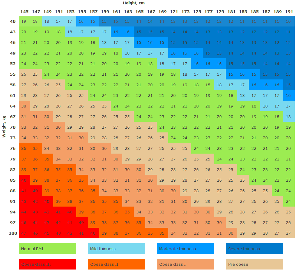 Γαλάζιο = Ελαφρώς λιποβαρής