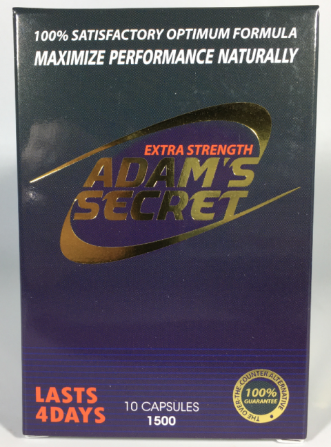 Πρόκειται για το συμπλήρωμα διατροφής με την ονομασία Adam’s Secret και συγκεκριμένα για τα προϊόντα Adam’s Secret Extra Strength 1500 Capsules και Adam’s Secret Extra Strength 3000 Capsules.