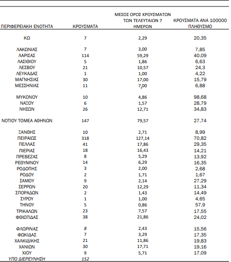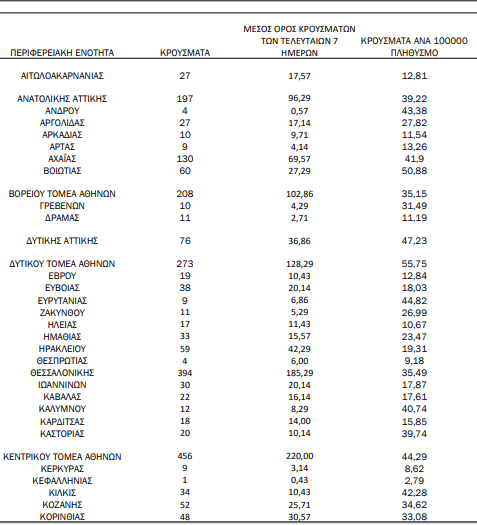 • Κεντρικός Τομέα Αθηνών: 456 κρούσματα