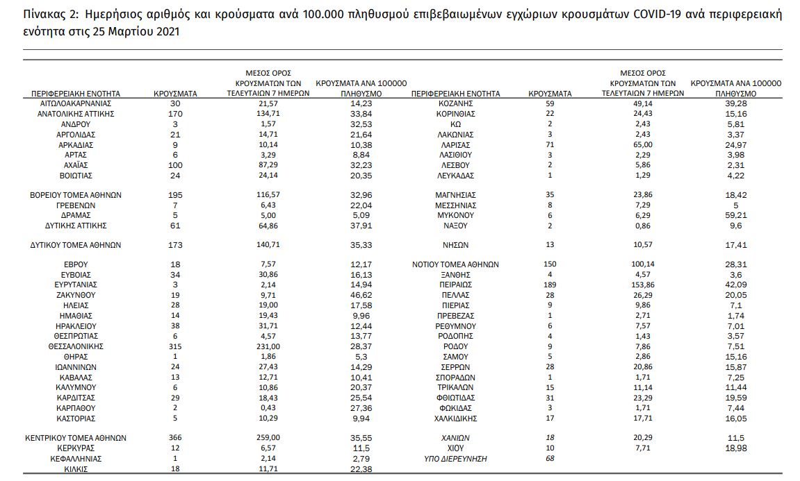 Αναλυτικότερα τα κρούσματα στις περιφερειακές ενότητες που ανήκουν στην Αττική: