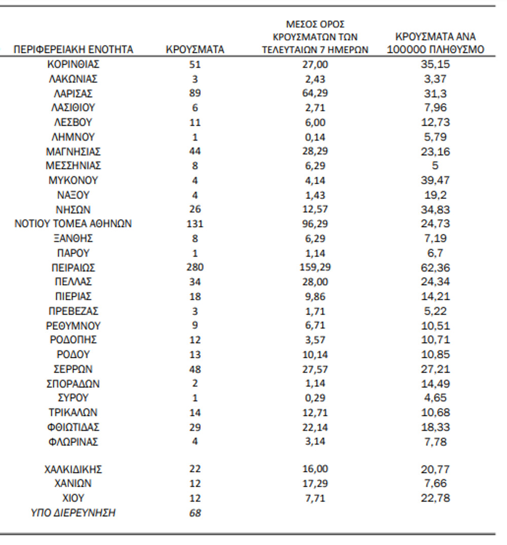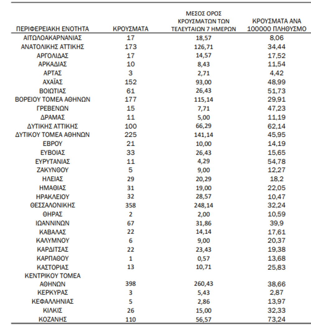 Κεντρικός Τομέα Αθηνών: 398 κρούσματα