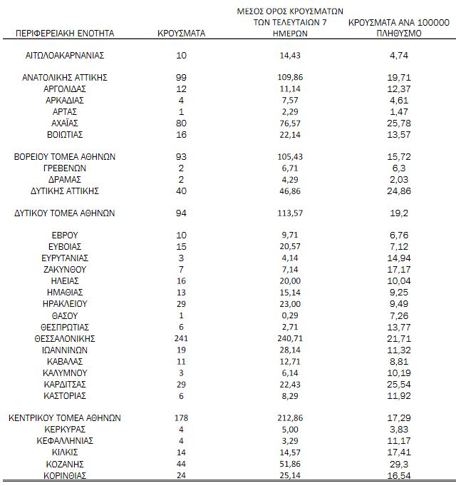 Αναλυτικά η κατανομή των νέων κρουσμάτων σε όλη τη χώρα