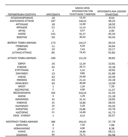 Αναλυτικότερα στην Αττική τα κρούσματα κατανέμονται ως εξής: