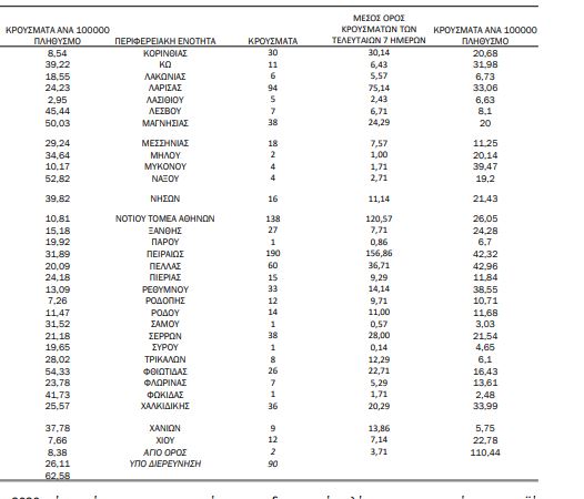 Οι νέοι θάνατοι ασθενών με COVID-19 είναι 72, ενώ από την έναρξη της επιδημίας έχουν καταγραφεί συνολικά 8.232 θάνατοι. Το 95.7% είχε υποκείμενο νόσημα ή/και ηλικία 70 ετών και άνω.