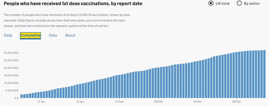 Από τις 14 Μαρτίου έως σήμερα, το εμβόλιο έχει χορηγηθεί σε ακόμα 7,1 εκατομμύρια πολίτες και τα επιβεβαιωμένα κρούσματα έχουν αυξηθεί κατά σχεδόν 100.000.