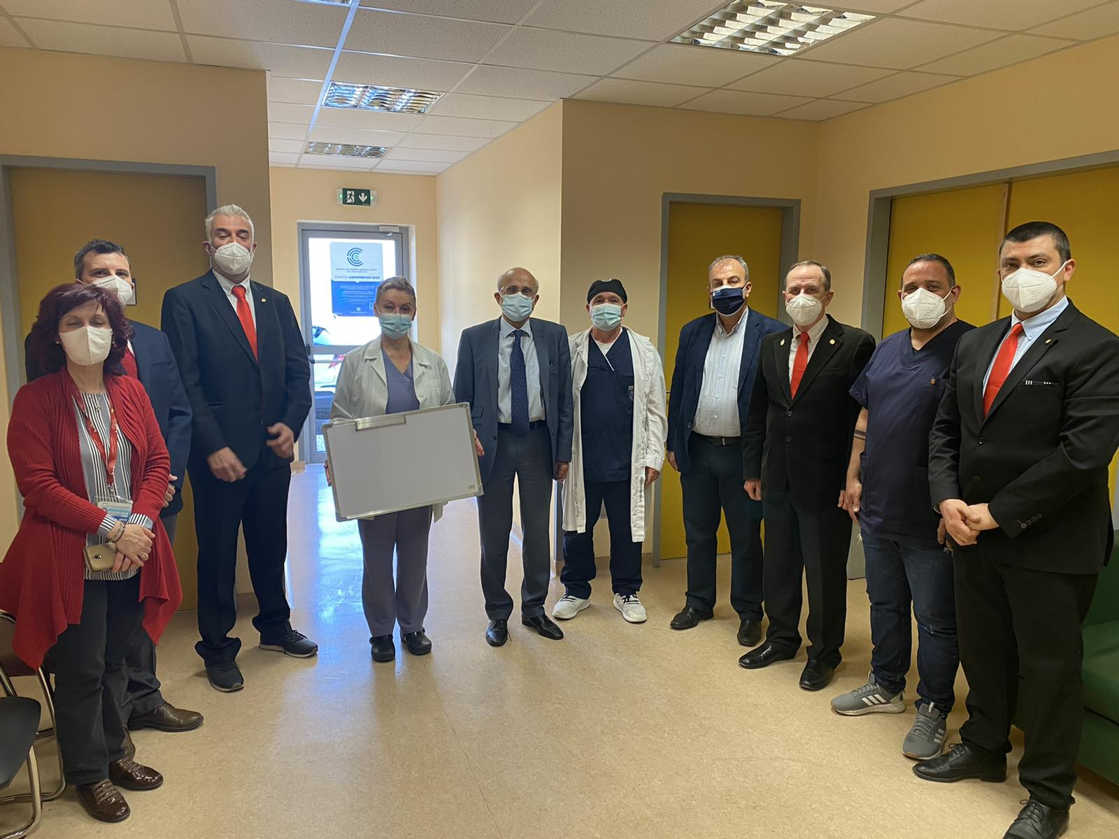 Το Πανεπιστημιακό Γενικό Νοσοκομείο Θεσσαλονίκης «ΑΧΕΠΑ» επισκέφθηκε το πρωί της Δευτέρας 12 Απριλίου 2021 και δώρισε δέκα (10) λευκούς μαγνητικούς πίνακες χειρουργείων αντιπροσωπεία του τμήματος American Hellenic Educational Progressive Association- ΑΗΕΡΑ HJ41 Καλαμαριάς «Κωνσταντίνος Παλαιολόγος» με επικεφαλή τον Αντιπρόεδρο Tom R. Maguire, τον Γραμματέα κ. Κωνσταντίνο Αμασόγλου, τον Διευθυντή Κοινωνικής Ευθύνης κ Σπύρο Τριανταφύλλου, τον Διευθυντή Φιλανθρωπίας κ.Σταμάτη Τσικρικώνη ο οποίος και επιμελήθηκε της δωρεάς του φίλου του τμήματος μας κ. Συμεών Τούσιου, καθώς και τον Υποδιευθυντή Φιλανθρωπείας κ. Αστέριο Πίτσιο, παρουσία του Αντιπεριφερειάρχη Υγείας Κεντρικής Μακεδονίας κ. Χρήστου Μήττα,