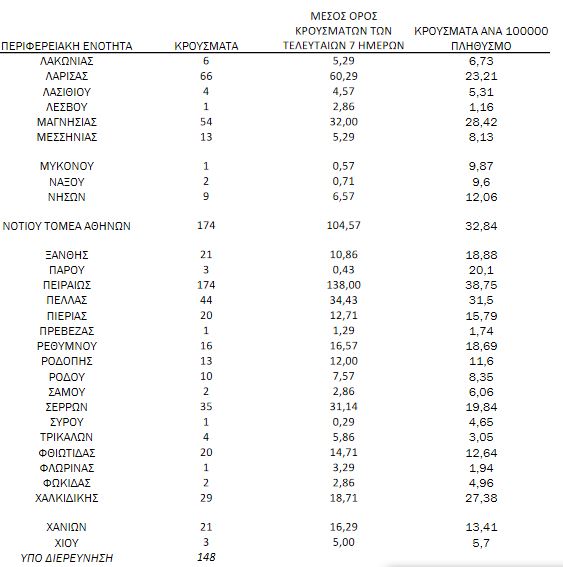 Αναλυτικότερα τα κρούσματα στις περιφερειακές ενότητες που ανήκουν στην Αττική: