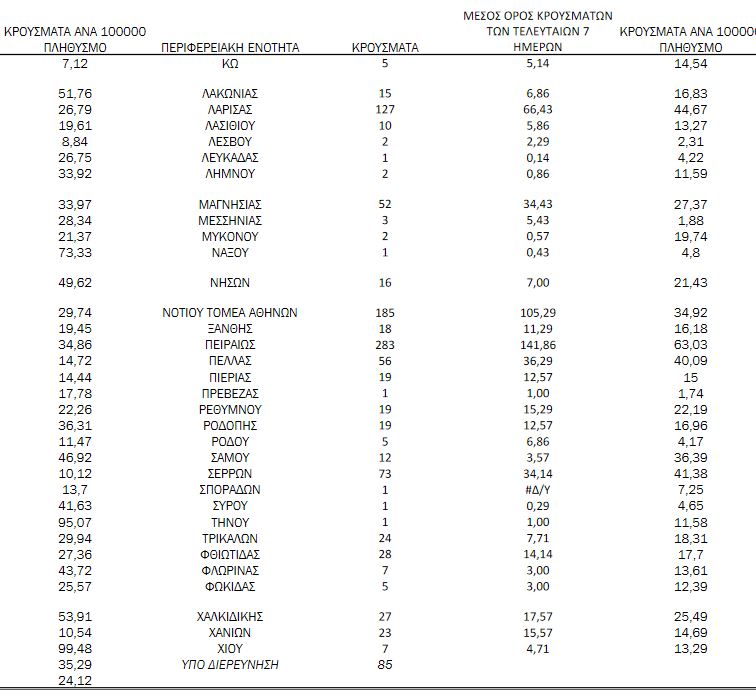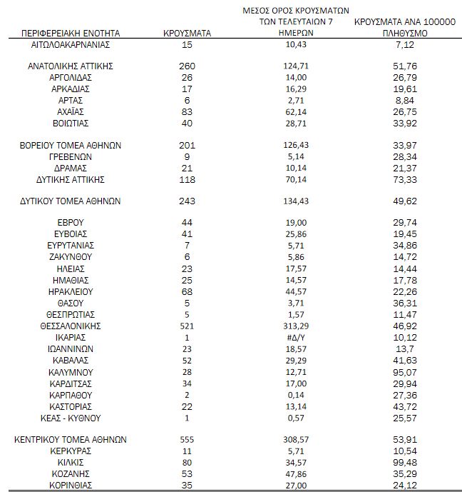 Αναλυτικότερα τα κρούσματα στις περιφερειακές ενότητες που ανήκουν στην Αττική: