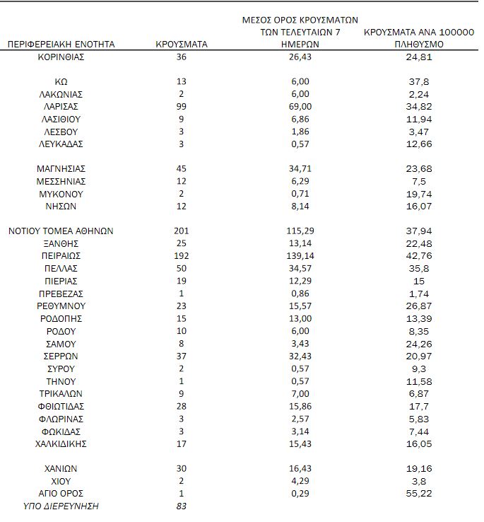 Αναλυτικότερα τα κρούσματα στις περιφερειακές ενότητες που ανήκουν στην Αττική: