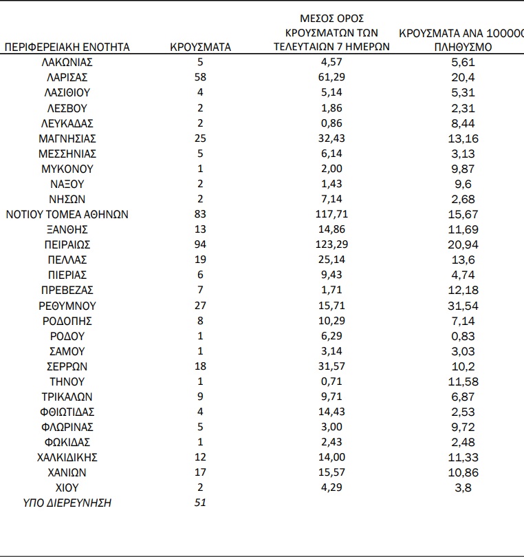 Δείτε αναλυτικά τα στοιχεία που ανακοίνωσε ανά περιφέρεια ο ΕΟΔΥ: