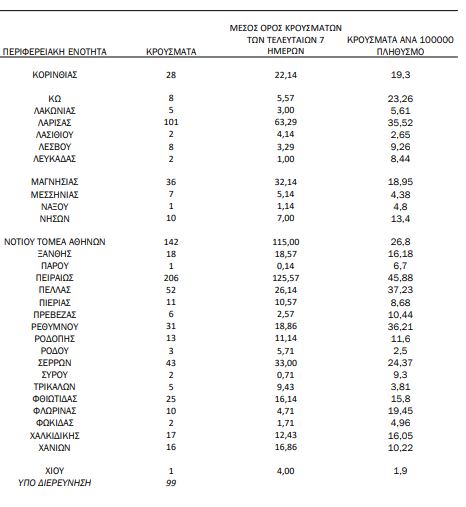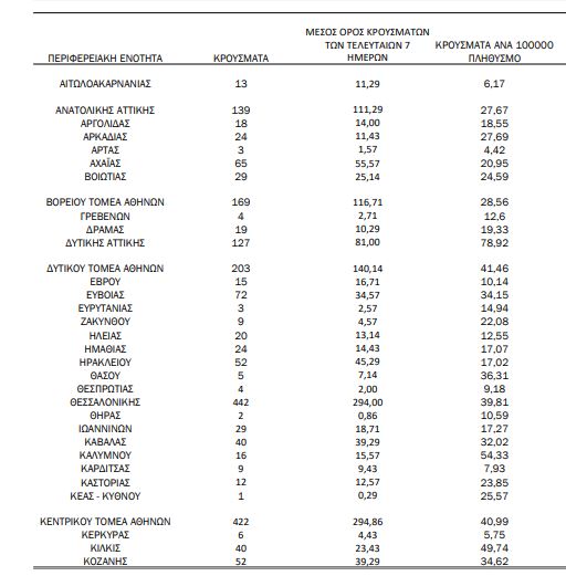 Αναλυτικότερα τα κρούσματα στις περιφερειακές ενότητες που ανήκουν στην Αττική: