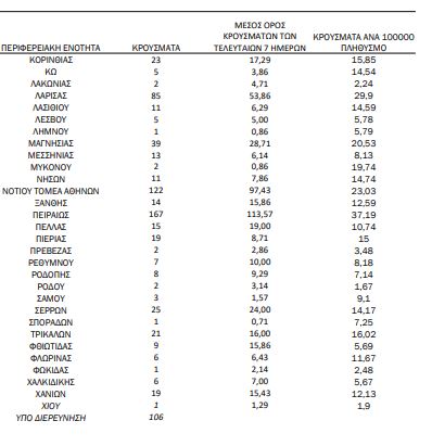 Αναλυτικότερα τα κρούσματα στις περιφερειακές ενότητες που ανήκουν στην Αττική: