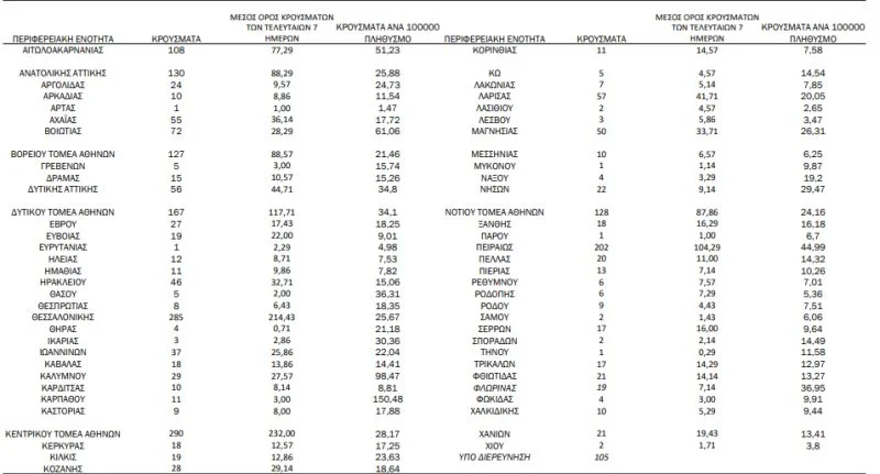 Ακολουθεί χάρτης με την λεπτομερή γεωγραφική κατανομή των κρουσμάτων.