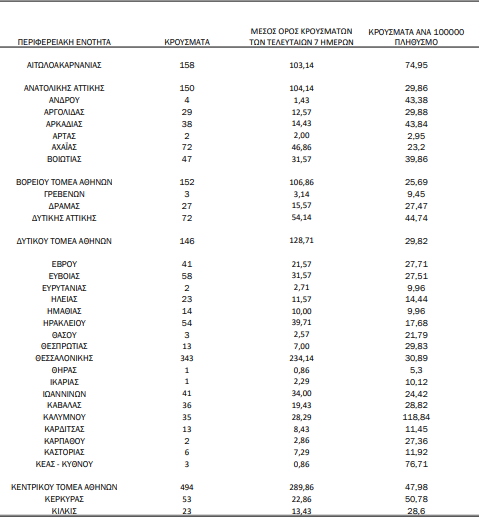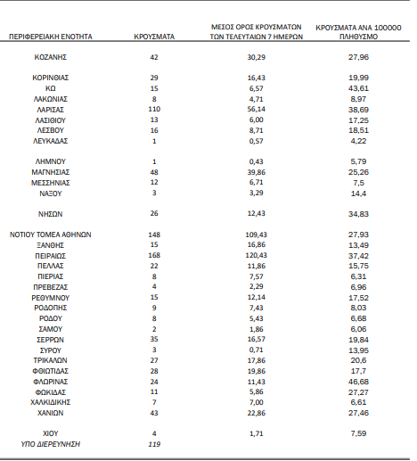 Αναλυτικότερα τα κρούσματα στις περιφερειακές ενότητες που ανήκουν στην Αττική: