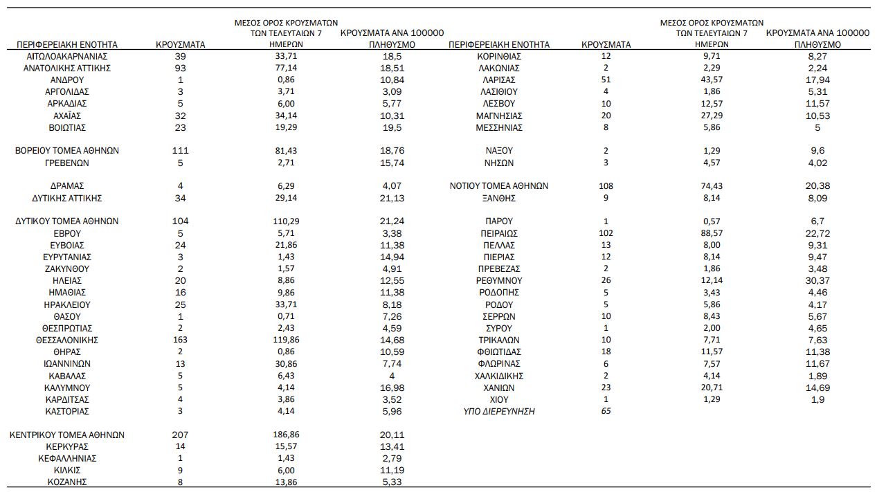 Αναλυτικότερα τα κρούσματα στις περιφερειακές ενότητες που ανήκουν στην Αττική: