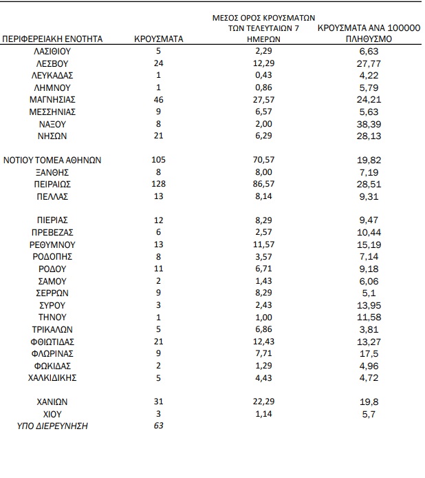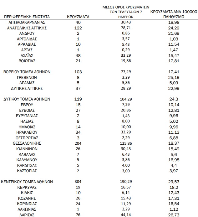 1905 νέα κρούσματα και 39 θύματα στην Ελλάδα σήμερα – Η κατανομή ανά περιφερειακή ενότητα