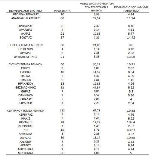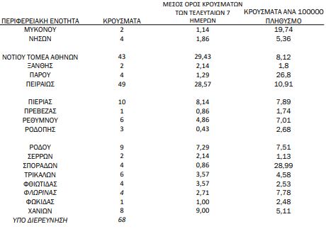 Αναλυτικά η κατανομή των κρουσμάτων σε όλη τη χώρα