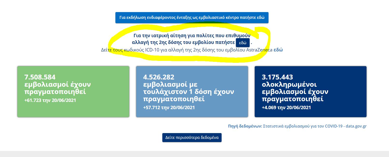 Σήμερα τέθηκε σε λειτουργία η πλατφόρμα emvolio.gov.gr το πεδίο για την αλλαγή της δεύτερης δόσης του εμβολίου της AstraZeneca.