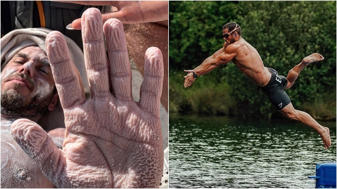 Παράλληλα με το μήνυμα, ο Edgley μοιράστηκε μερικά στιγμιότυπα με το απίστευτα ρυτιδιασμένο δέρμα του λόγω του χρόνου που πέρασε στο νερό.