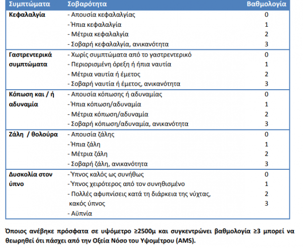 Η Οξεία Νόσος του Υψομέτρου (AMS) σύμφωνα με τον ΕΟΔΥ είναι πιο συχνή σε εκείνους που δεν αφιερώνουν αρκετό χρόνο να εγκλιματιστούν κατάλληλα σε εκείνους που φτάνουν απευθείας σε περιοχές που εντοπίζονται σε μεγάλο υψόμετρο.