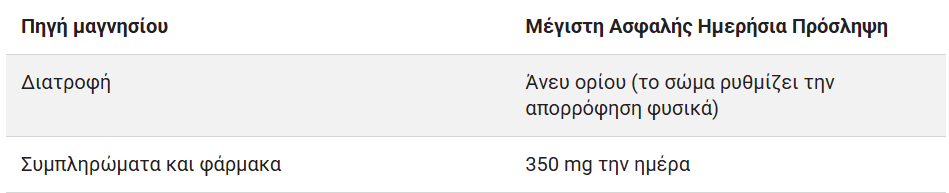 2. Ανώτατο όριο για συμπληρώματα μαγνησίου