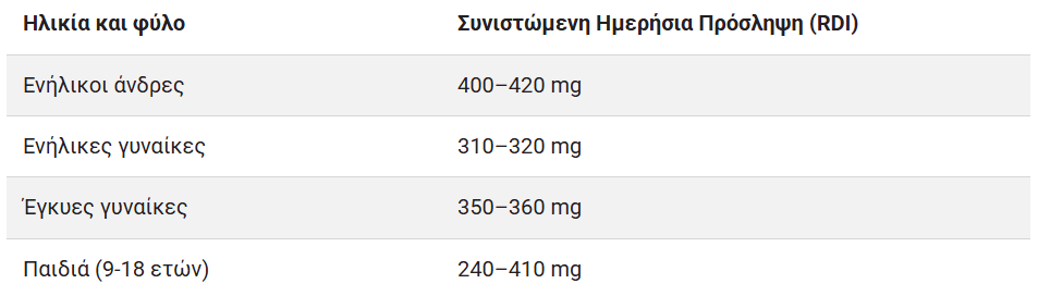 1. Συνιστώμενη Ημερήσια Πρόσληψη (RDI) για μαγνήσιο