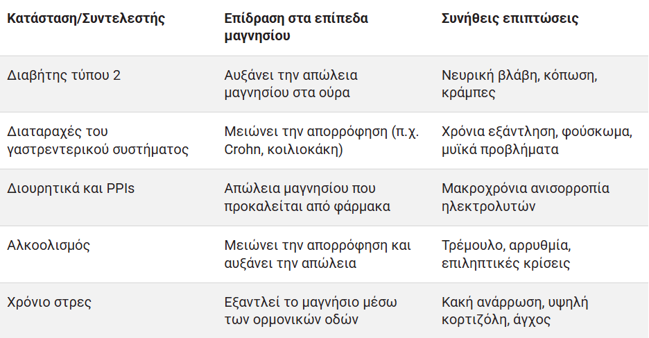 Ποιες ιατρικές καταστάσεις μπορούν να καλύψουν ή να επιδεινώσουν την ανεπάρκεια μαγνησίου;