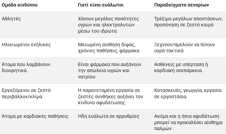 Ορισμένες ομάδες πληθυσμού είναι πιο πιθανό να εμφανίσουν αίσθημα παλμών από αφυδάτωση.