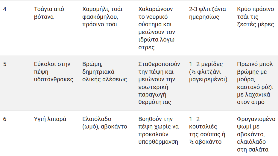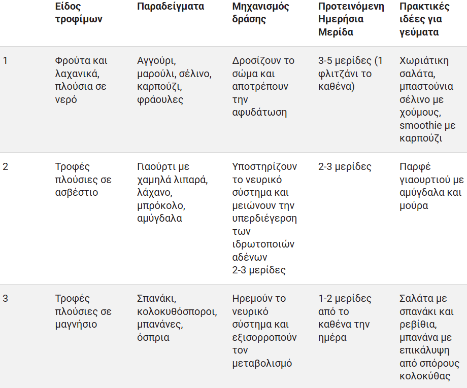 Ποιες τροφές βοηθούν στη φυσική μείωση του ιδρώτα;