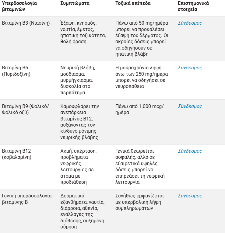 Οι βιταμίνες Β είναι υδατοδιαλυτές, που σημαίνει ότι η περίσσεια συνήθως απεκκρίνεται μέσω των ούρων.