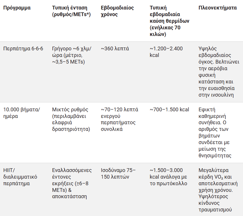 Η υψηλότερη ένταση παράγει μεγαλύτερες καρδιομεταβολικές βελτιώσεις ανά λεπτό, ενώ το γρήγορο περπάτημα 6-6-6 είναι αποτελεσματικό και πιο προσιτό για πολλούς.