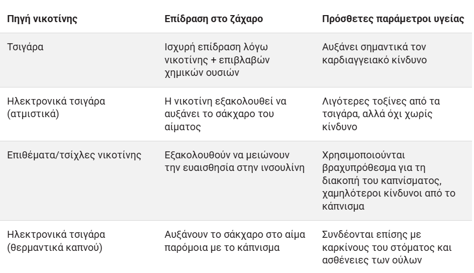 Είναι όλες οι πηγές νικοτίνης εξίσου επιβλαβείς για το σάκχαρο;