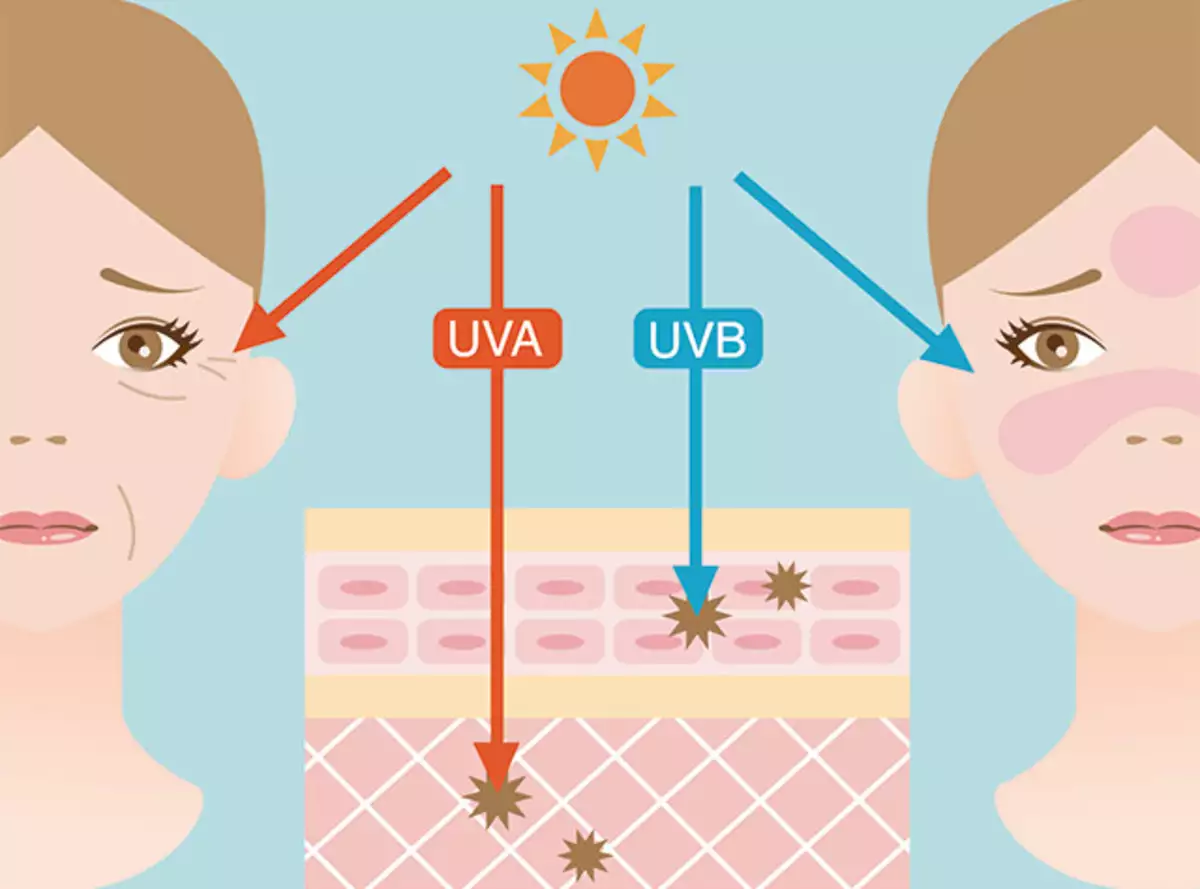 • Οι ακτίνες UVA εισχωρούν βαθύτερα στο δέρμα, καταστρέφοντας το μεσαίο στρώμα (χόριο). Το χόριο περιέχει τους ελαστικούς ιστούς που διατηρούν το δέρμα ελαστικό. Ως εκ τούτου, οι ακτίνες UVA επισπεύδουν την γήρανση του δέρματος και προκαλούν τις γνωστές σε όλους μας ρυτίδες.