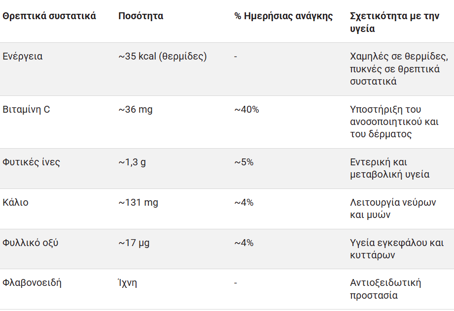 Διατροφική αξία ανά 1 μέτρια κλημεντίνη (περίπου 74 g):