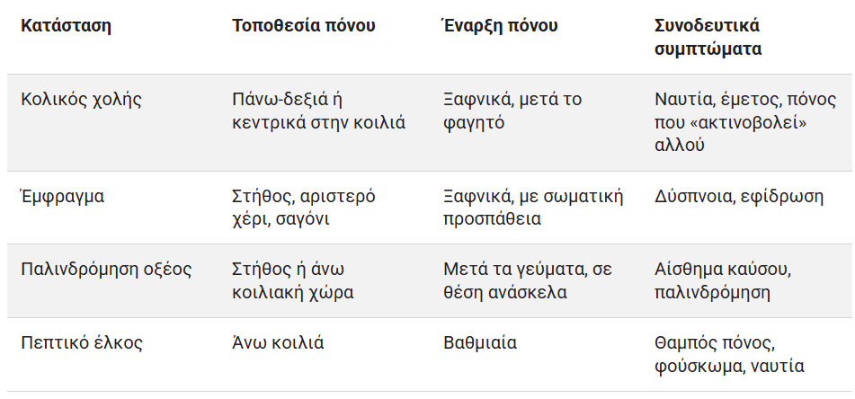 Ο πόνος στη χοληδόχο κύστη συχνά συγχέεται με άλλες καταστάσεις όπως καούρα, έλκη ή καρδιακά προβλήματα.
