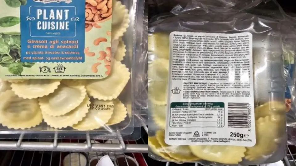 Ο ΕΦΕΤ, ανακοίνωσε πώς ανακαλεί φρέσκα ζυμαρικά με γέμιση σπανάκι και κάσιους, με προέλευση από την Ιταλία και με εμπορική ονομασία «Bertagni Plant Cuisine» λόγω αλλεργιογόνων ουσιών.